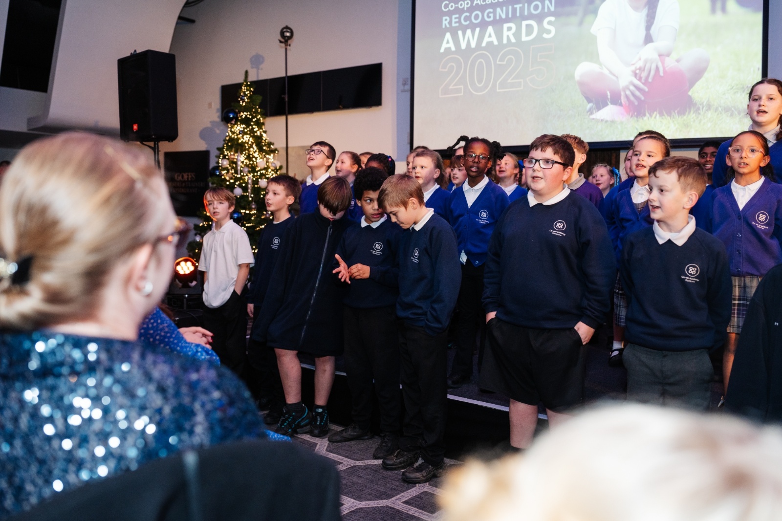 The night opened with two uplifting performances. Students from Co-op Academy Bebington’s Band set the tone with a confident, energetic set, followed by the Wirral & Liverpool Primary Choir, whose pupils from Co-op Academy Hillside, Co-op Academy Woodslee, Co-op Academy Portland and Co-op Academy Rathbone filled the room with warmth and pride. Their performances were a powerful reminder of why we do what we do.